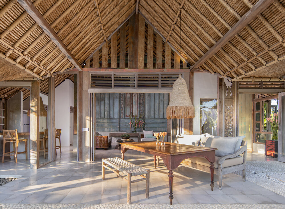 Bareng Bareng opens up completely, We have perfected the use of thatch roofs And feel they are the most artistic and sustainable roof we can use. We also believe that The ability to create these roofs is being lost, since only Balinese craftspeople know how to Put them up. Others shy away,