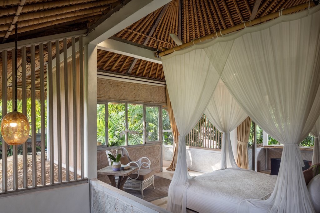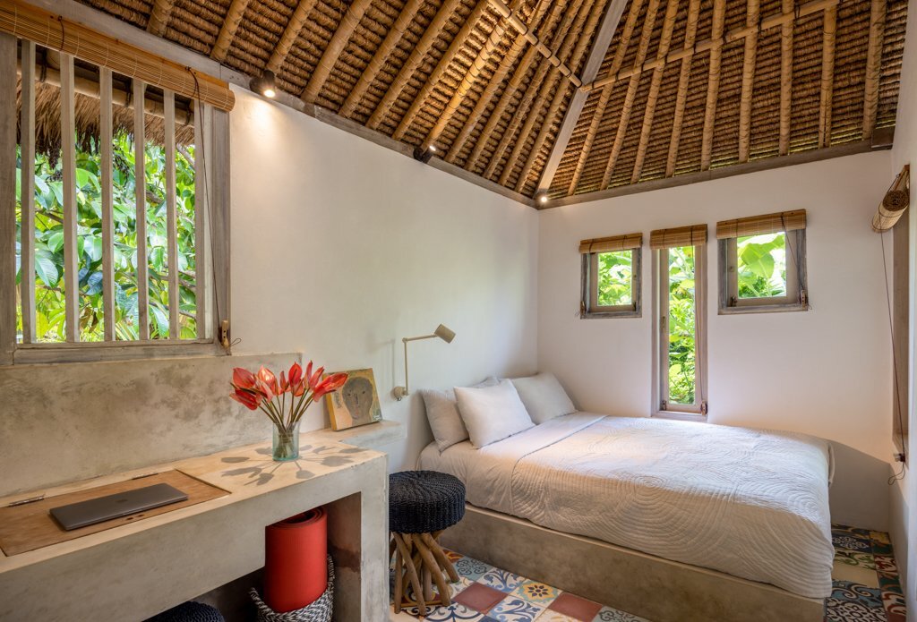 We were featured in the New York Times: Living in Harmony in Bali and now in the new book: Seen Unseen: Embracing Natural Home Design on Bali. Lounge on one of three daybeds and two balconies. Marguerite has been designed to be in touch with nature and eco-friendly. Enjoy sleeping under the hand crafted grass roof (called alang-alang) that encourages natural ventilation. Shower under the stars in our outdoor bath.